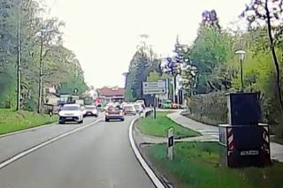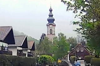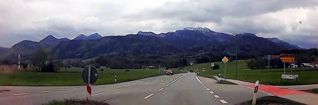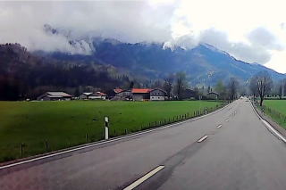 | 左:正面にオーストリア・Großgmain グロースグマインに建つ Pfarrkirche Großgmain グロースグマイン教区教会。走行時は国境沿いを走ったなんて気付かず。 右:運転は快適そのものですが、あいにく低い雲に覆われ、高い山々は見えません。 |