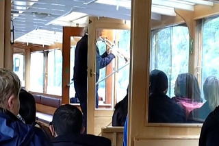 | 左:ゴンドラは、4人乗りを二つ繋いだ遊園地にあるような乗り物。乗客は私だけ。 右:中間駅付近は、ハイジの世界。 |