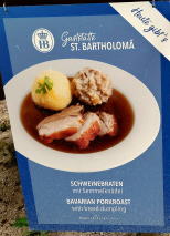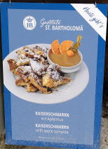 Wiener 1 Paar 4.9 Apfelstrudel mit Sah 7.5 Benediktiner Hell 4.6 Franken Silvaner 0.2L6.5 Cappuccino 3.5 チップ込み30ユーロ。 |