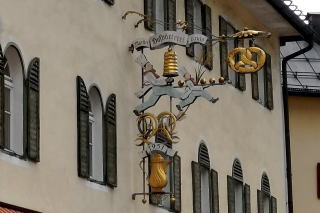 | 左:ベーカリーの看板は、店に入ってみたくなるような、精巧さ。先端はプレッエル。 右:市庁舎近くにある Luitpoldbrunnen ルイトポルトの泉(1913)。Prinzregent Luitpold von Bayern バイエルン摂政ルイトポルト(1821–1912)にちなむものらしい。 早めに宿へ戻り、サウナで整えて一寝入りして夕食へ。 |