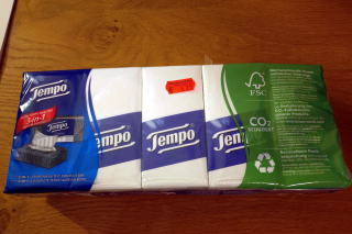 | 左:幸いSHA郊外の宿に到着する直前に薬局があり、Gelo Myrtol forte 喉の炎症を抑えるカプセルを購入。これは2024年の旅行でケルン中央駅の薬局で処方してもらって効果は確認済み。トローチのようになっていて、同じタイプは日本に無いようです。 右:併せてポケットティッシュを買おうとしたら、店員が「Tempoが欲しいのか。」と問われ、そうだったドイツではポケットティッシュと言えばTempoだと思い出しました。1~2個でいいけど、写真の10個パックしか見かけませんでした。 |