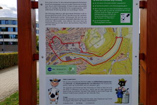 | 左:時刻は11時半、宿へ帰るにはまだ早いので、アッテンドルンを散策。この案内図はこの地区で盛んな乳製品産業を巡る「Milchweg ミルクの道4km」を紹介。 右:中心部を少々散策しました。日曜朝なので静まり返っています。 |