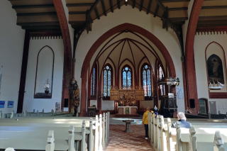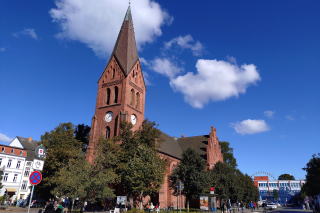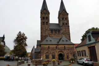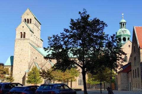 | ドイツ到着11日目、ゴスラー郊外を発って、ヒルデスハイムを経由してロストック近郊の知人宅まで450kmほど走ります。出発地に近いヴェルニゲローデの天気予報は晴れ、予想最高気温15度、最低気温3度。到着地ロストックの予報は晴れ、最高16度、最低4度で、長崎の11月下旬~12月上旬頃の気温ですが、晴れたのでドライブ日より。 【世界遺産】大聖堂と聖ミヒャエリス教会  |