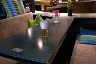 | 右:お茶の時間帯が終わると、20時までアルコールやソフトドリンクが飲み放題の時間帯。 | |